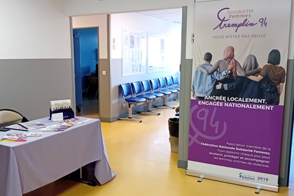 Lundi 9 mars, de 13 h 30 à 16 h 30, Tremplin 94 Solidarité Femmes tenait un stand au centre hospitalier intercommunal de Villeneuve-Saint-Georges (CHIV) dans le cadre de la Journée internationale des droits des femmes.